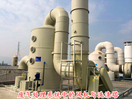 在前文有提到過(guò)洗滌塔的工作原理是廢氣由管道進(jìn)入塔體底部,然后向上游走,經(jīng)過(guò)一層層的噴淋凈化之后由塔體頂部的除霧裝置除霧,最后由玻璃鋼離心風(fēng)機(jī)通過(guò)管道排至大氣環(huán)境中。