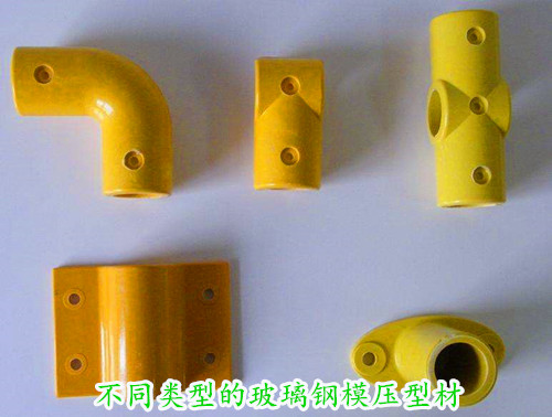 本公司生產(chǎn)各種不同類型的模壓類產(chǎn)品,其中以型材類的模壓產(chǎn)品使用居多,如三通、底座、v型座、四通、直通等產(chǎn)品常被用來組裝玻璃鋼護欄、圍欄。