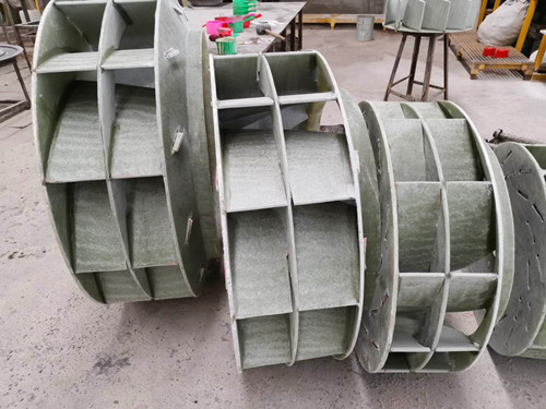 葉輪所使用的的樹脂為防腐性能卓越的乙烯基樹脂,玻纖使用無堿玻纖氈,對于大部分的酸、堿等腐蝕性成分有很高的抗性。但是如果雜質(zhì)過多或者風(fēng)機(jī)的安裝設(shè)計不合理會導(dǎo)致葉輪表面附著大量雜質(zhì)。