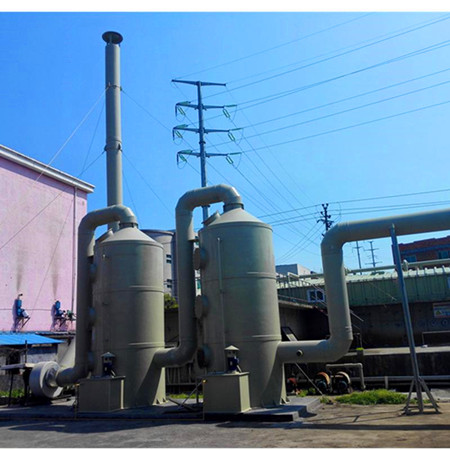 在廢氣凈化工程中,廢氣處理塔和風(fēng)機(jī)是必不可少的設(shè)備,風(fēng)機(jī)的作用是將生產(chǎn)過程中產(chǎn)生的廢氣吸入廢氣塔內(nèi),然后在塔內(nèi)經(jīng)噴淋、水洗凈化之后再排至下一道處理工序中或直接排至大氣環(huán)境。下面是一些風(fēng)機(jī)和廢氣塔的安裝效果圖。