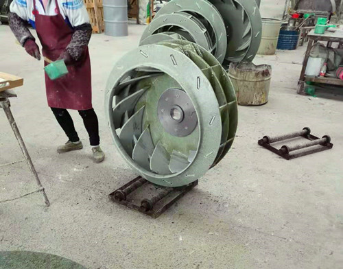 作為風(fēng)機(jī)的主要轉(zhuǎn)動裝置,玻璃鋼風(fēng)機(jī)葉輪使用的原材料是乙烯基樹脂與玻纖氈。主要的制作工藝為手糊工藝,葉輪的蓋板、葉片都是單獨(dú)進(jìn)行制作之后再組裝起來的。