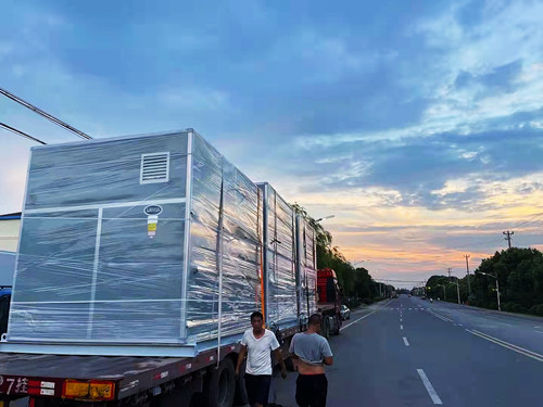 三臺大型裝有隔音箱的玻璃鋼風機發(fā)往貴州