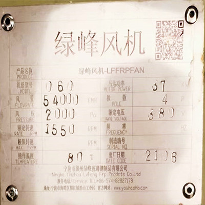 參照下圖,風(fēng)機的常用參數(shù)包括風(fēng)量、風(fēng)壓、轉(zhuǎn)速、電機功率、工作溫度、電機極數(shù)、出廠日期等。該標(biāo)牌使用的是不銹鋼材料制作,方面后期的維修或更換工作。