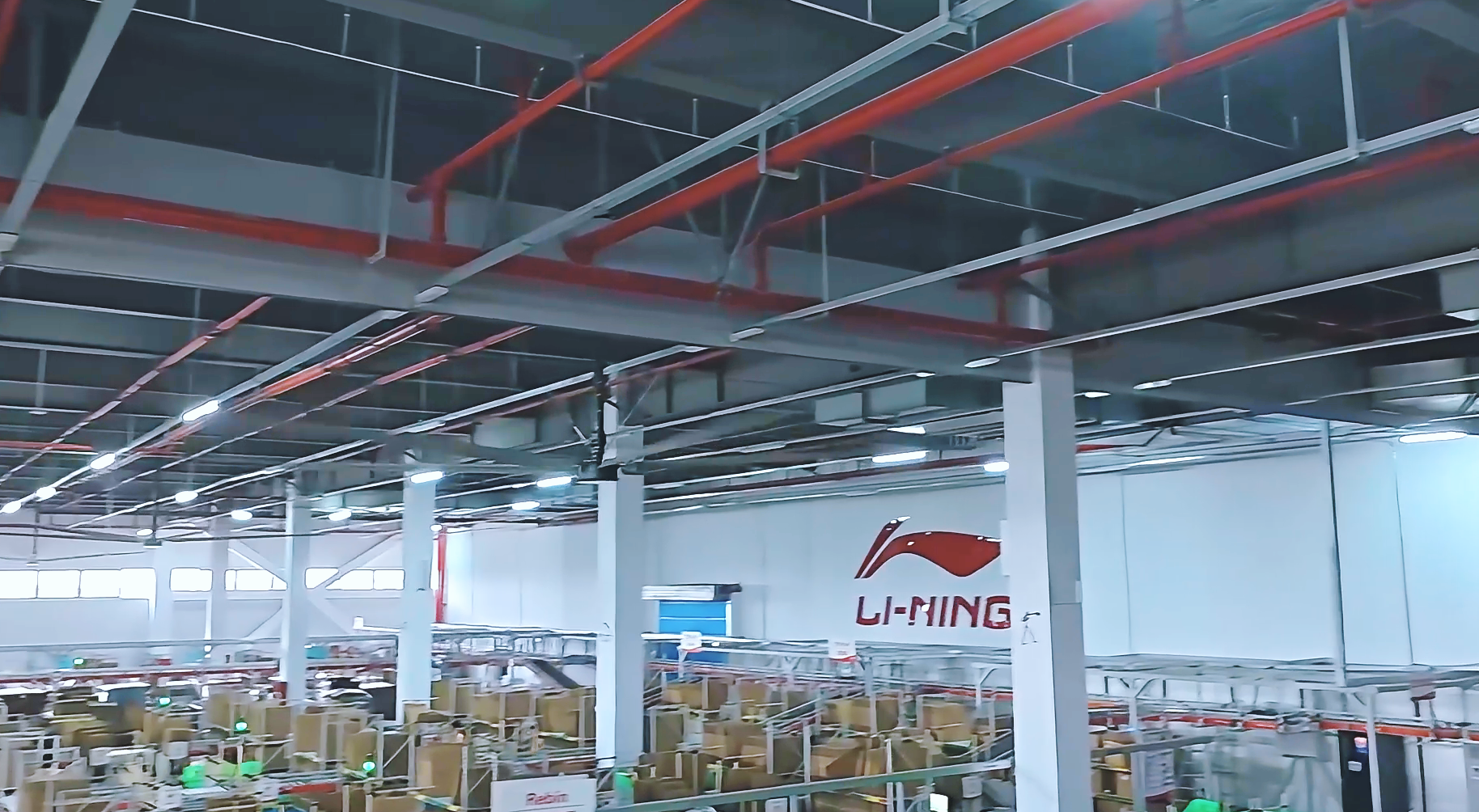 李寧倉房內(nèi)密集存放精密運(yùn)動(dòng)器材及功能性面料,華東季節(jié)性高溫高濕易導(dǎo)致金屬部件氧化及材料物性變化,急需物流高頻作業(yè)產(chǎn)生的粉...
