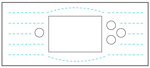 地板上的障礙物會阻礙水平移動的氣流,但如若障礙物高度在作用氣流以下,障礙物都不會阻擋過多氣流。空氣在這些障礙物周圍平滑地流動,失去一點動量,只會在障礙物后面留下一小塊不流動的區(qū)域。